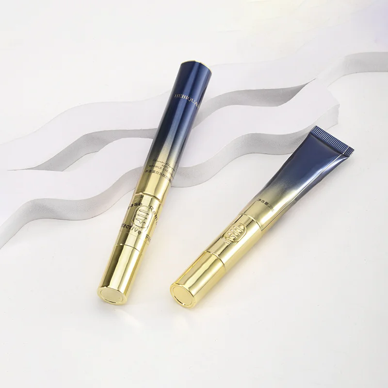 Custom 20ml Eye Cream Tube with Electric Vibrating Massage Applicator, Gradient Gold Eye Cream Serum Packaging Empty Skincare Container with Metal Applicator.