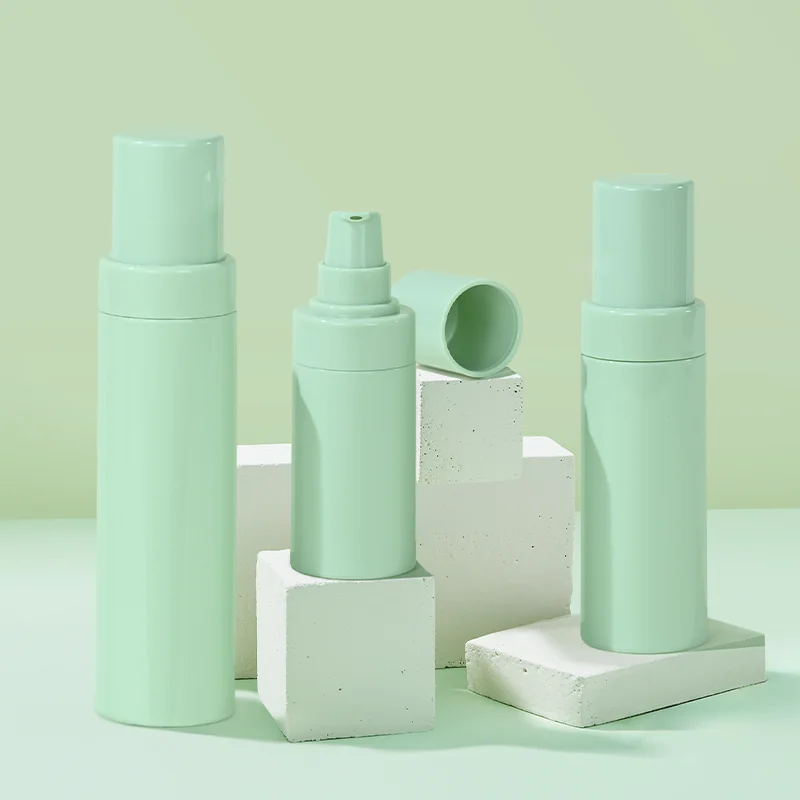 Airless Vacuum Cosmetic Travel Container PP Green Serum Bottle