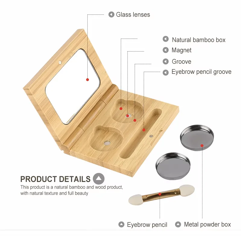 - Natural bamboo body, simple and fashion, high quality built in mirror in the lid, make it easy for you to check your makeup at any time.