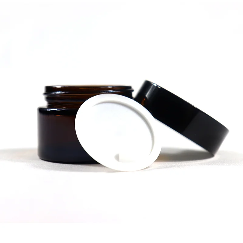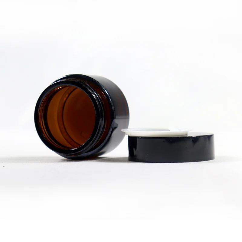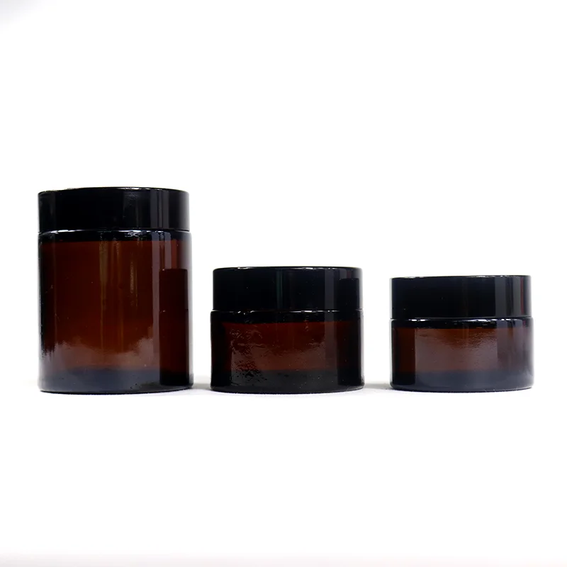 Bulk Amber Glass Cosmetic Jars with Black Airtight Lids