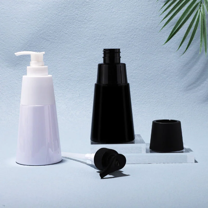 Custom Unique 250ml 300ml White Black Amber Soap Dispenser Bottle Cone Shape Men’s Shampoo Face Wash Pump Lotion Bottle Dispenser Refillable Amino Acid Whitening Cleanser Pump Dispenser with Modern Design.