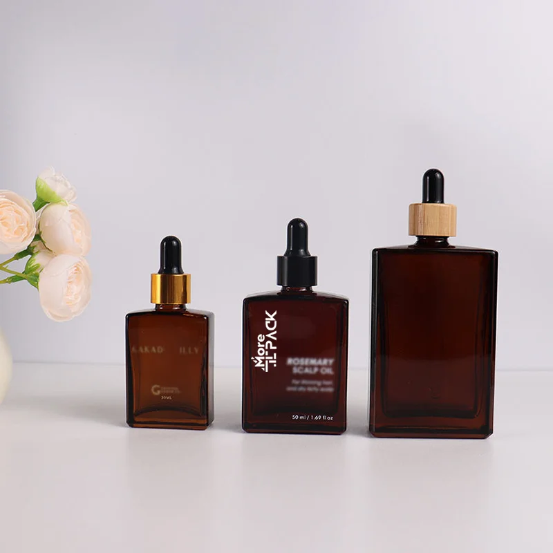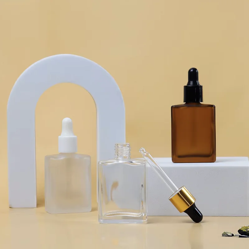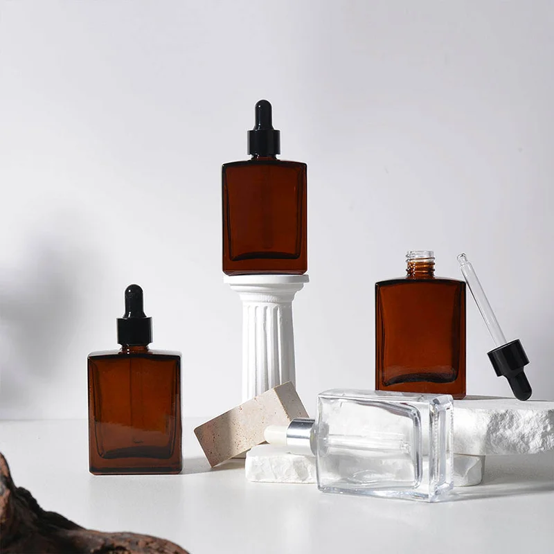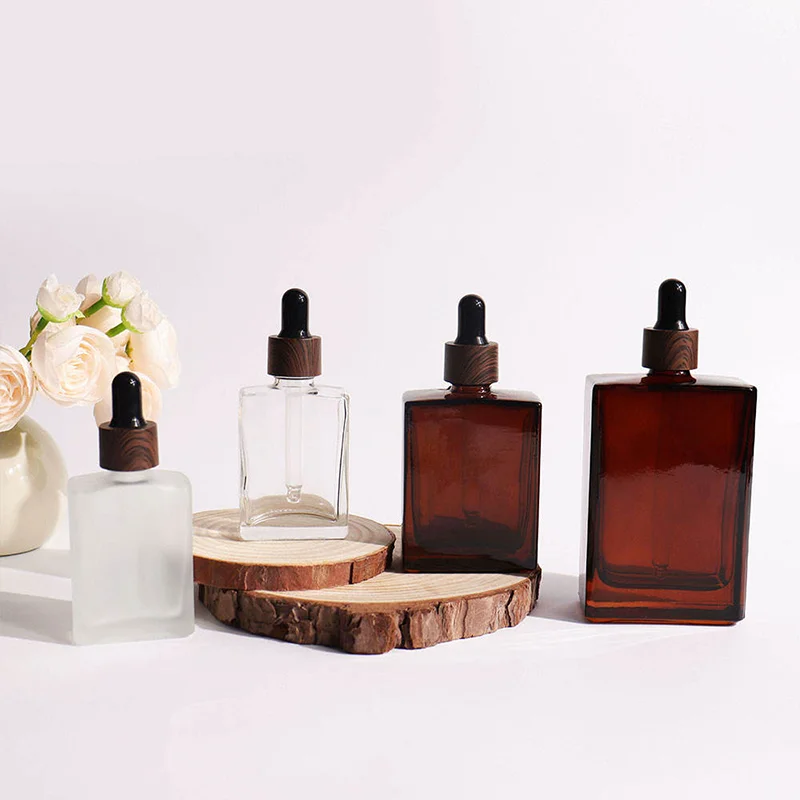 Clear Amber Square Glass Dropper Bottle Serum Essential Oil Packaging, Custom 30ml 50ml 100ml Square Dropper Bottle DIY Perfume Fragrance Herb Oil Pipette Bottle, Scents Oil Dropper Bottle.