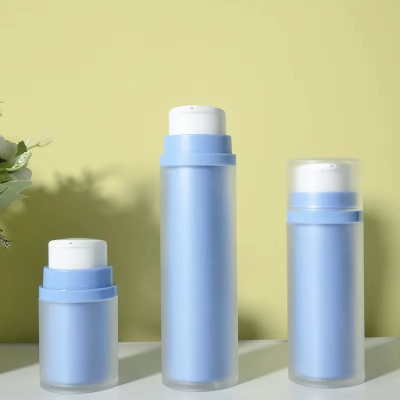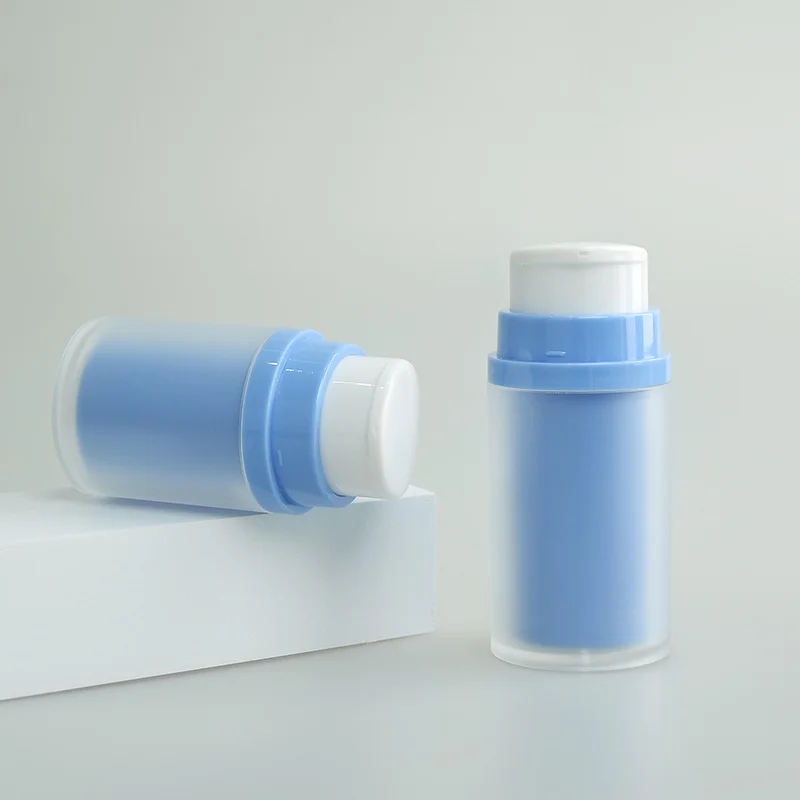 Double-walled AS+PP Plastic Airless Pump Bottle 30ml 50ml 80ml 100ml 120ml Blue Yellow Pink Refillable Airless Bottle for Lotion Cream Serum Cosmetic Packaging.