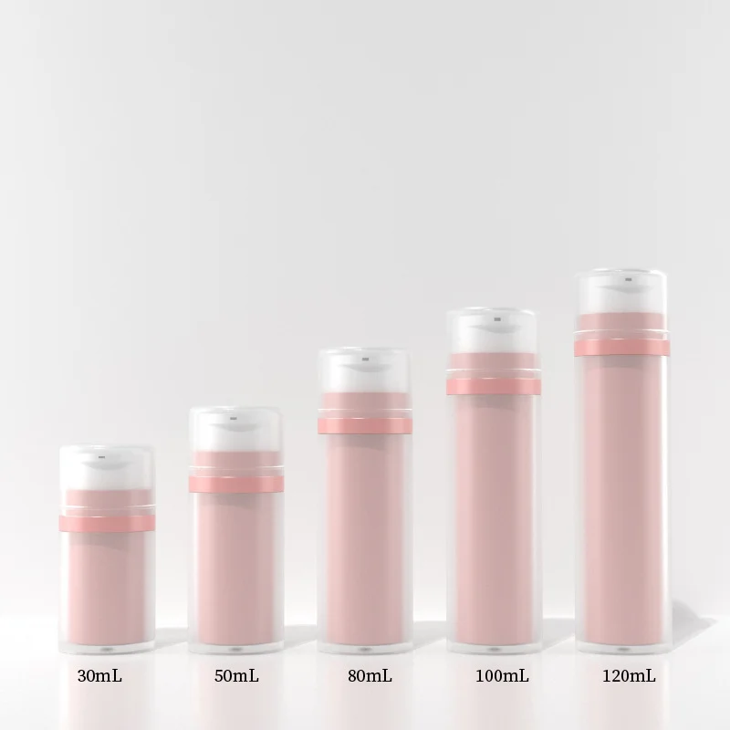This double-wall airless pump bottle uses vacuum pressing technology, with a replaceable inner tube and a rising piston inside. The empty bottles allow you to refill with your preferred face cream, body lotion, massage oil, eye serum, hand cream or foundation, and other cosmetics.