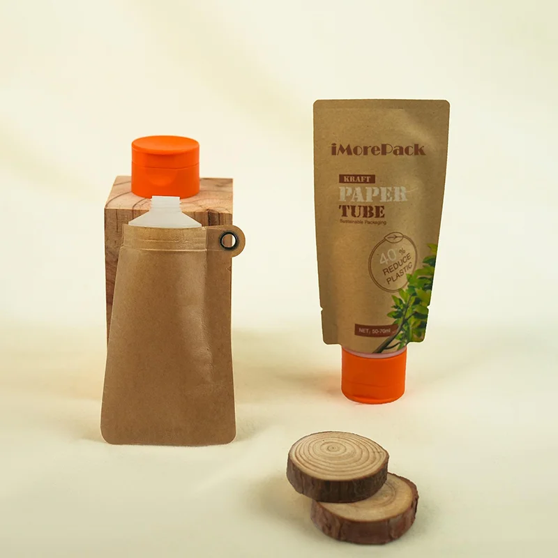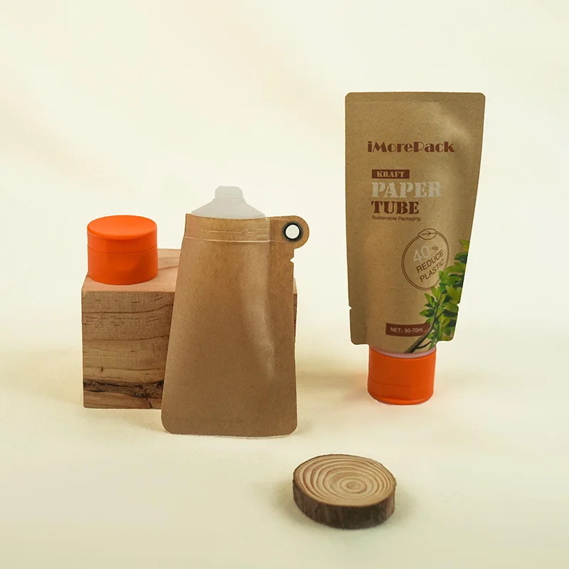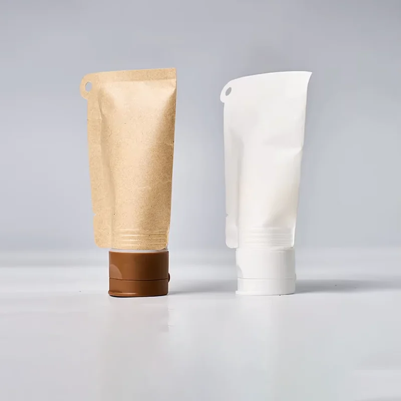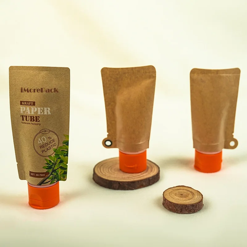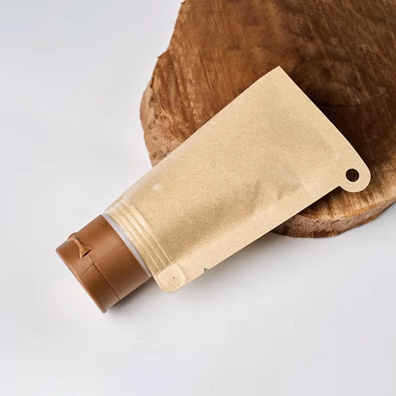 Custom Printed Spout Pouch Eco Friendly Cosmetic Kraft Paper Tube Biodegradable Liquid Bag with Pouch Recyclable Brown White Kraft Paper Spout Pouch Bag Wholesale.
