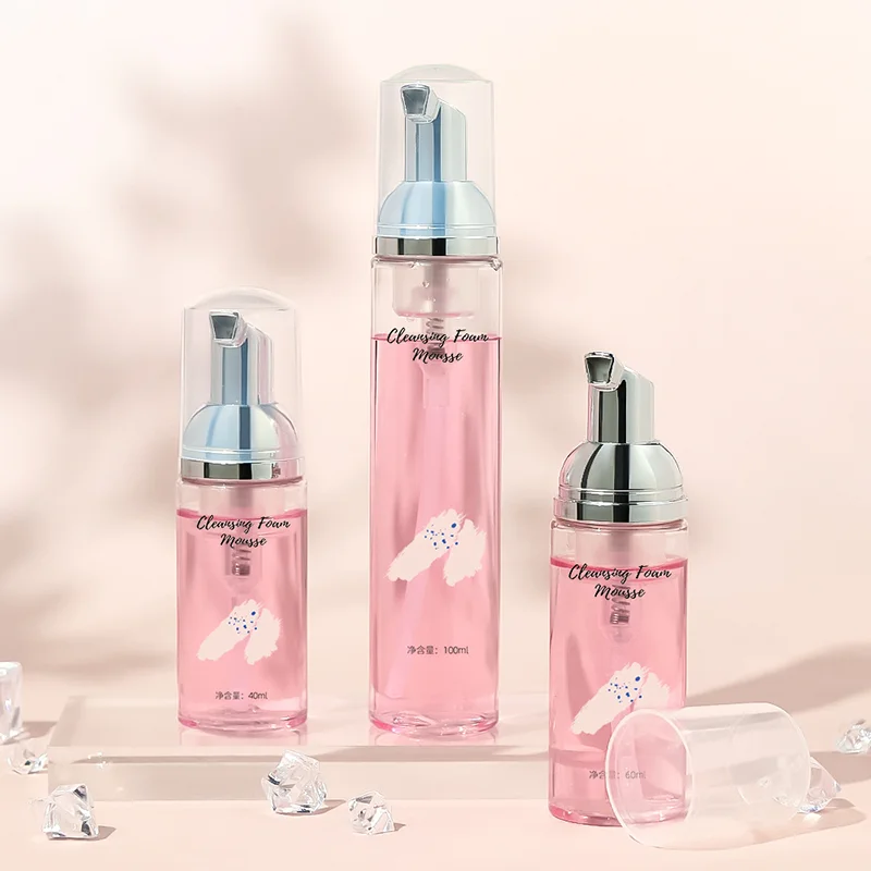 Small Capacity Mousse Facial Wash Bottle, Refillable Transparent PET Plastic Foam Dispenser Pump Bottle 40ml 50ml 60ml 80ml 100ml Soap Dispenser Pump Bottles, Mousse Foaming Bottles, Facial Nail Eyelash Cleanser Bottle.