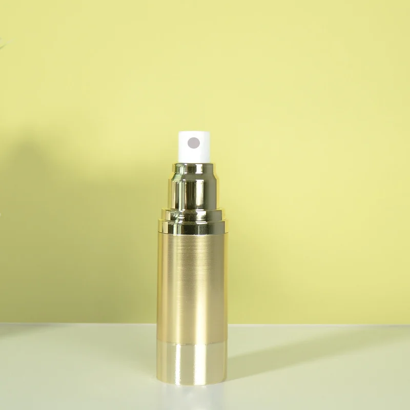 Empty Gold Silver Aluminum Cosmetic Airless Pump Spray Bottle