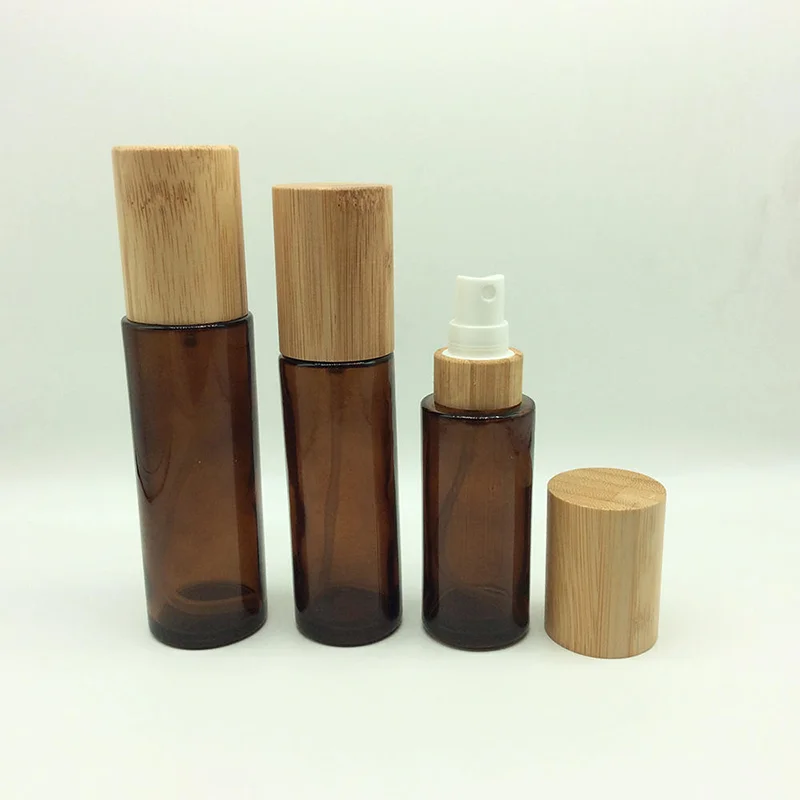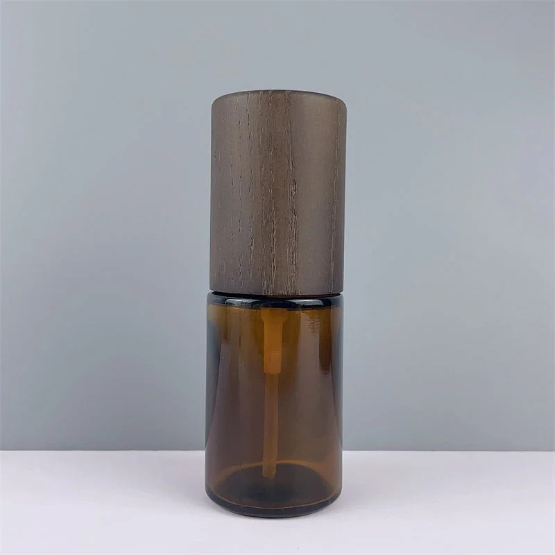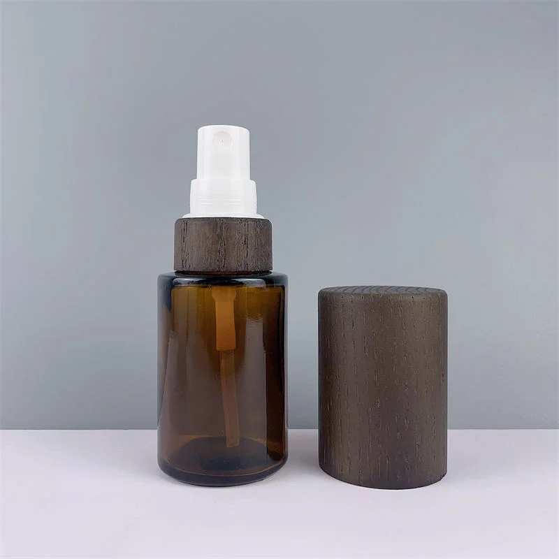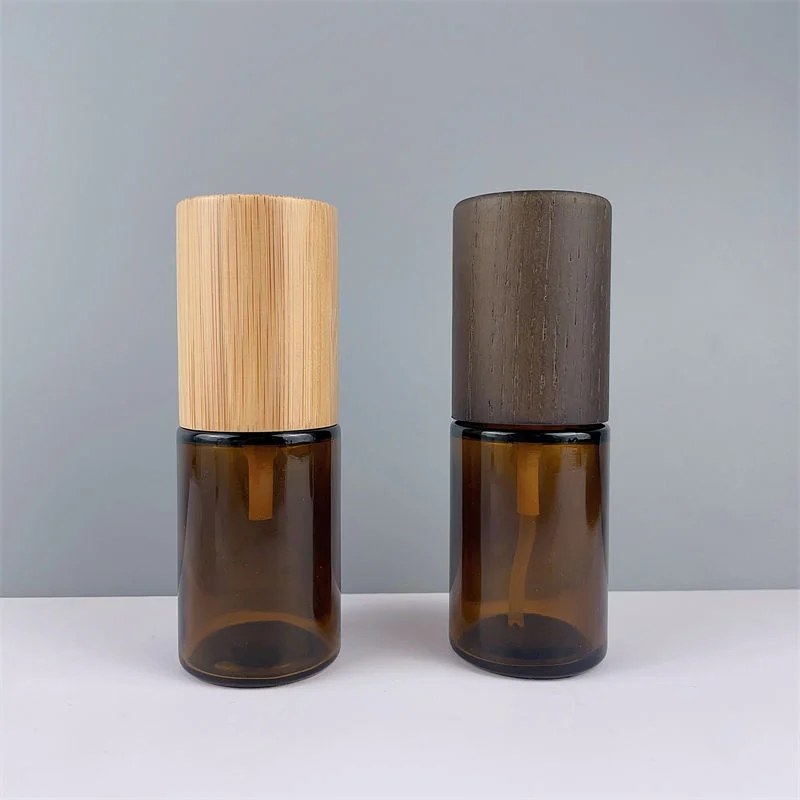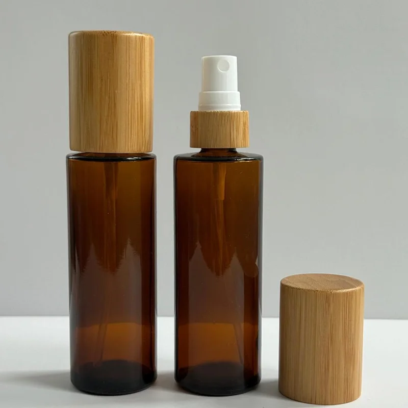 Fine Mist Amber Glass Spray Bottle with Bamboo Cap Pump Bottle