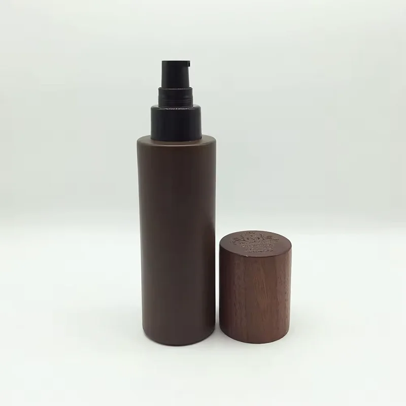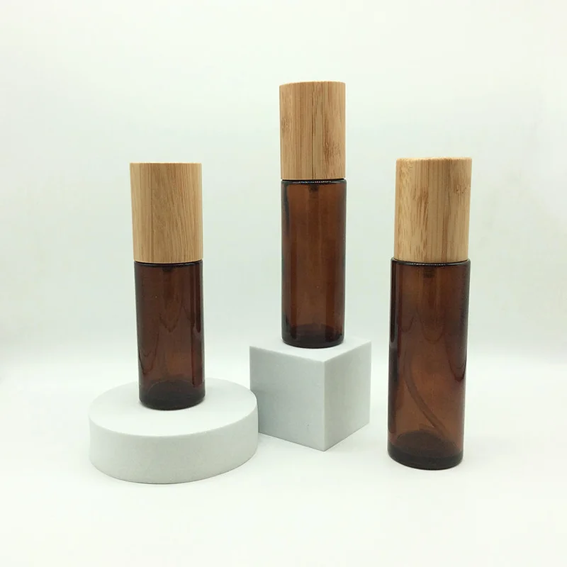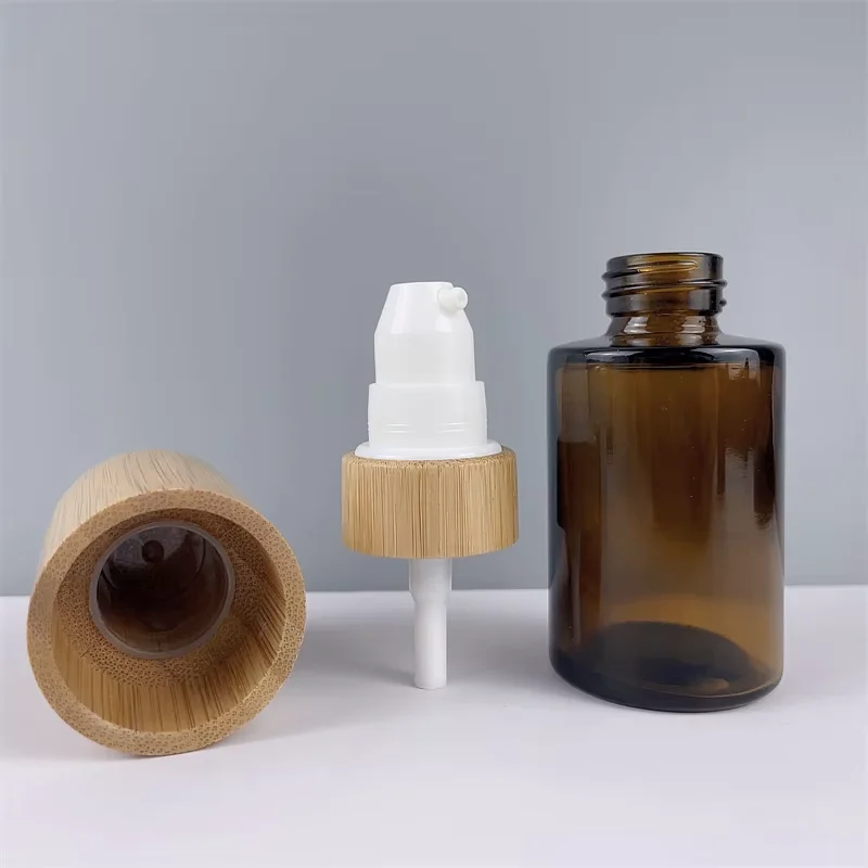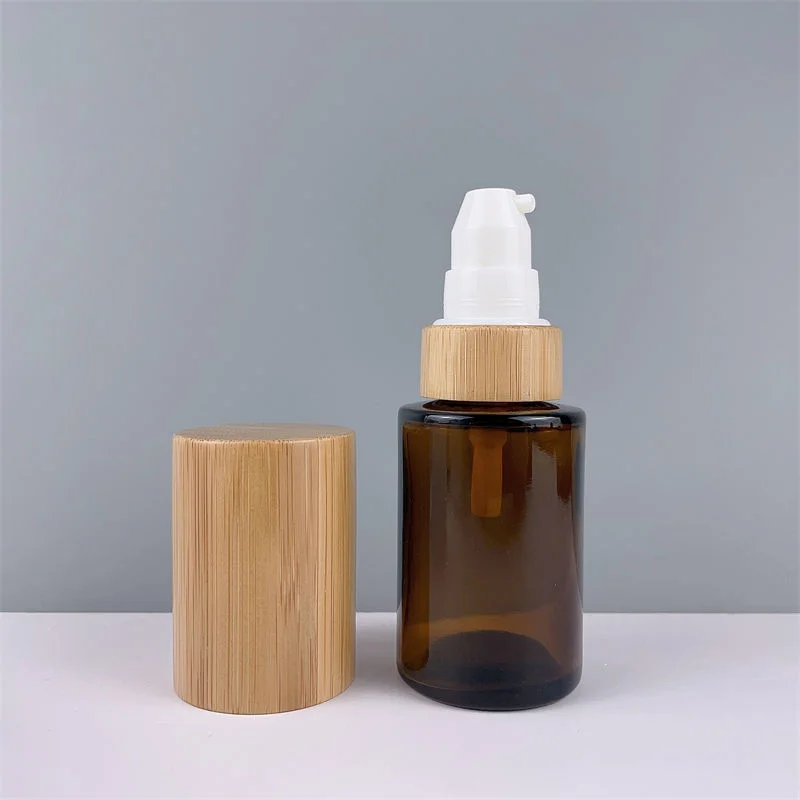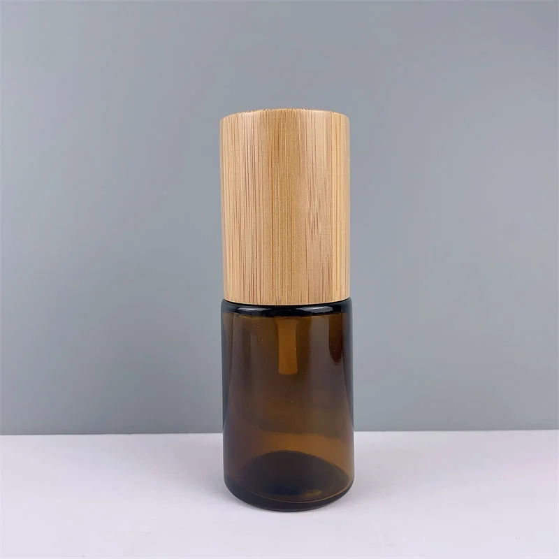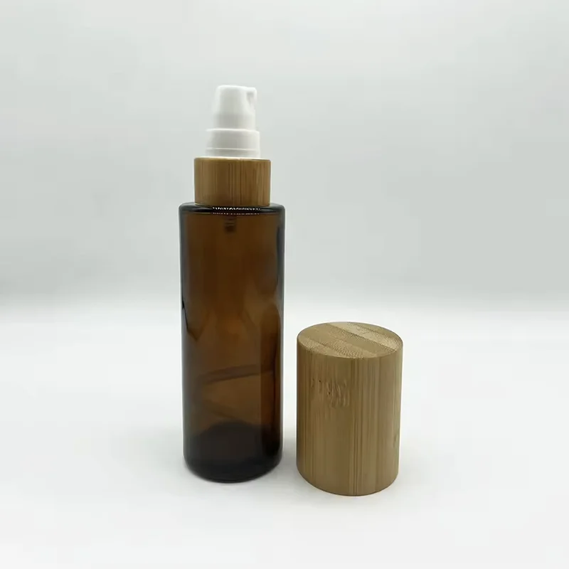 Fine Mist Amber Glass Spray Bottle with Bamboo Cap Pump Bottle