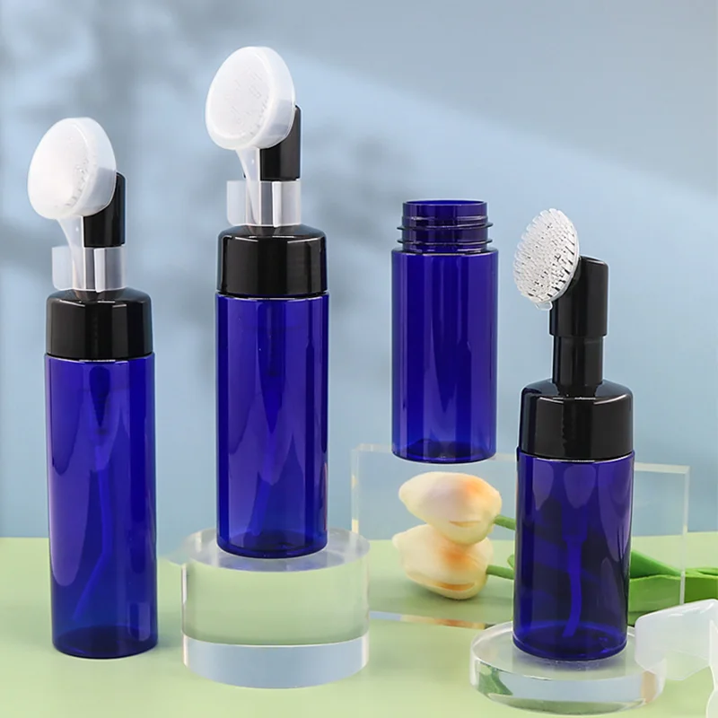 Empty PET Plastic Foaming Soap Pump Dispenser with Silicone Massage Brush Facial Cleansing Foam Dispenser Bottle Skincare Travel Size Face Wash Mousse Pump Bottle.
