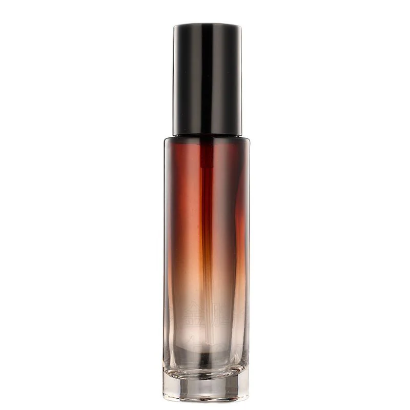 Wholesale Glass Pump Bottles with Lotion Dispenser, 50ml Gradient Amber Pump Bottles for or Cosmetic Emulsions, Refillable Lotion Essence Shampoo Container, Empty Essential Oil Conditioner with Black Cap Bulk.