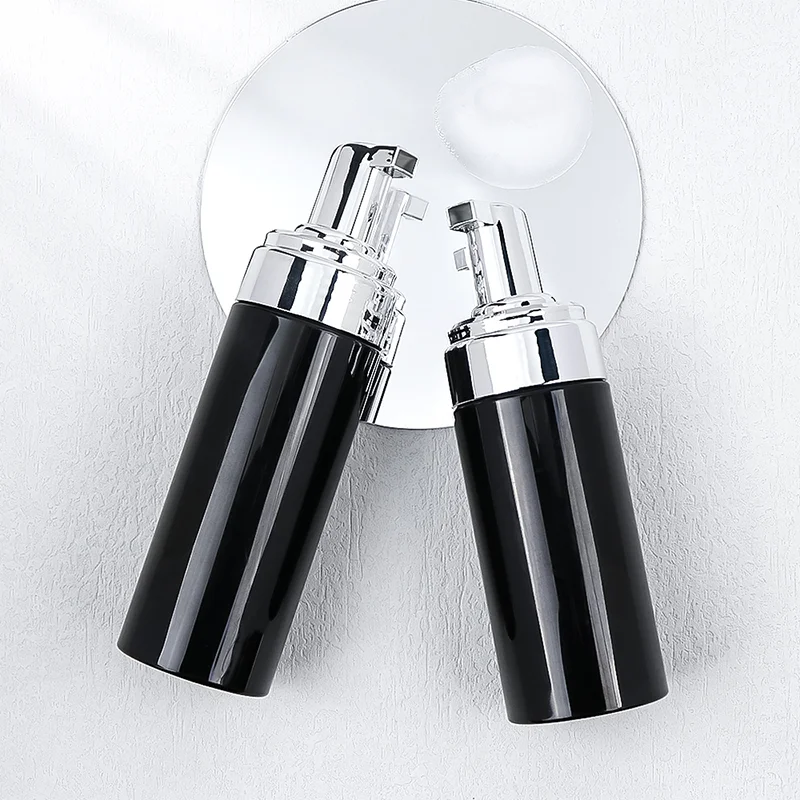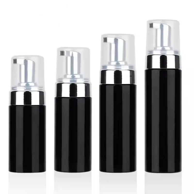 Wholesale Black PET Plastic Lash Shampoo Mousse Cleanser Bottle Easy Makeup Removal with Electroplated Foaming Pump Dispenser 100ml 120ml 150ml 200ml Eyelash Foam Cleanser Bottle.