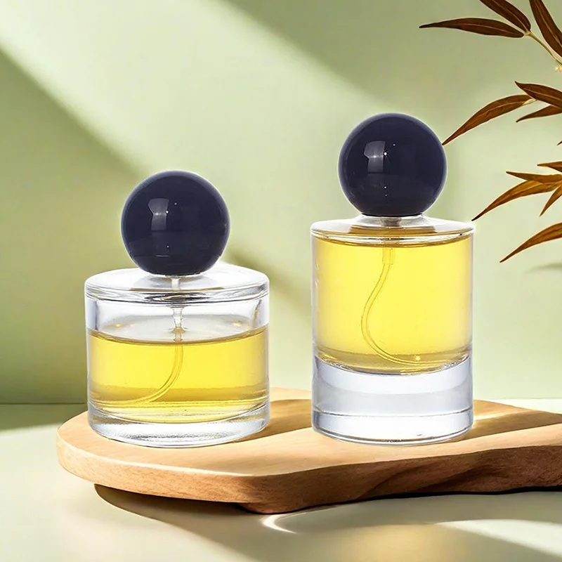 Round Transparent Glass Atomizer Perfume Spray Bottle, Luxury Fragrance Aroma Room Spray Bottle, Fine Mist Glass Cologne Spray Bottle 30ml 50ml 100ml Glass Cologne Spray Bottle with Custom Perfume Packaging Box.