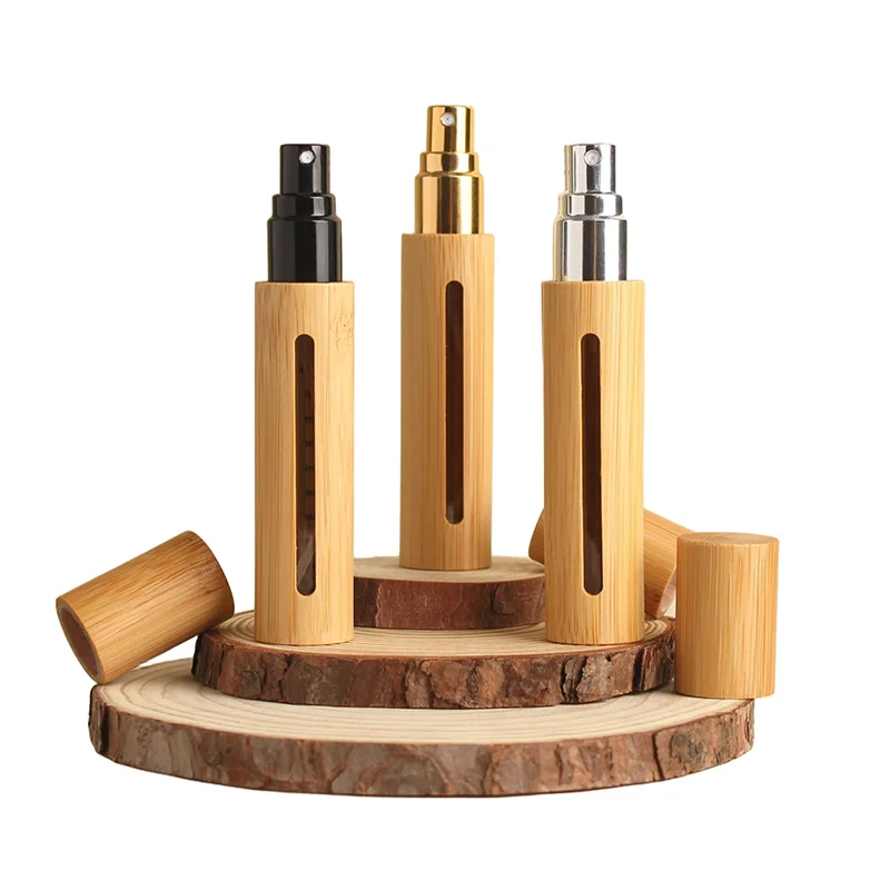 Refillable Bamboo Perfume Sprayer 5ml 8ml 10ml Perfume Atomizer Spray Bottle, Gold Silver Fine Mist Sprayer Bottle Bamboo Perfume Bottle Refillable Glass Atomizer, Custom Label for Essential Oils, Travel Fragrance Bottle.